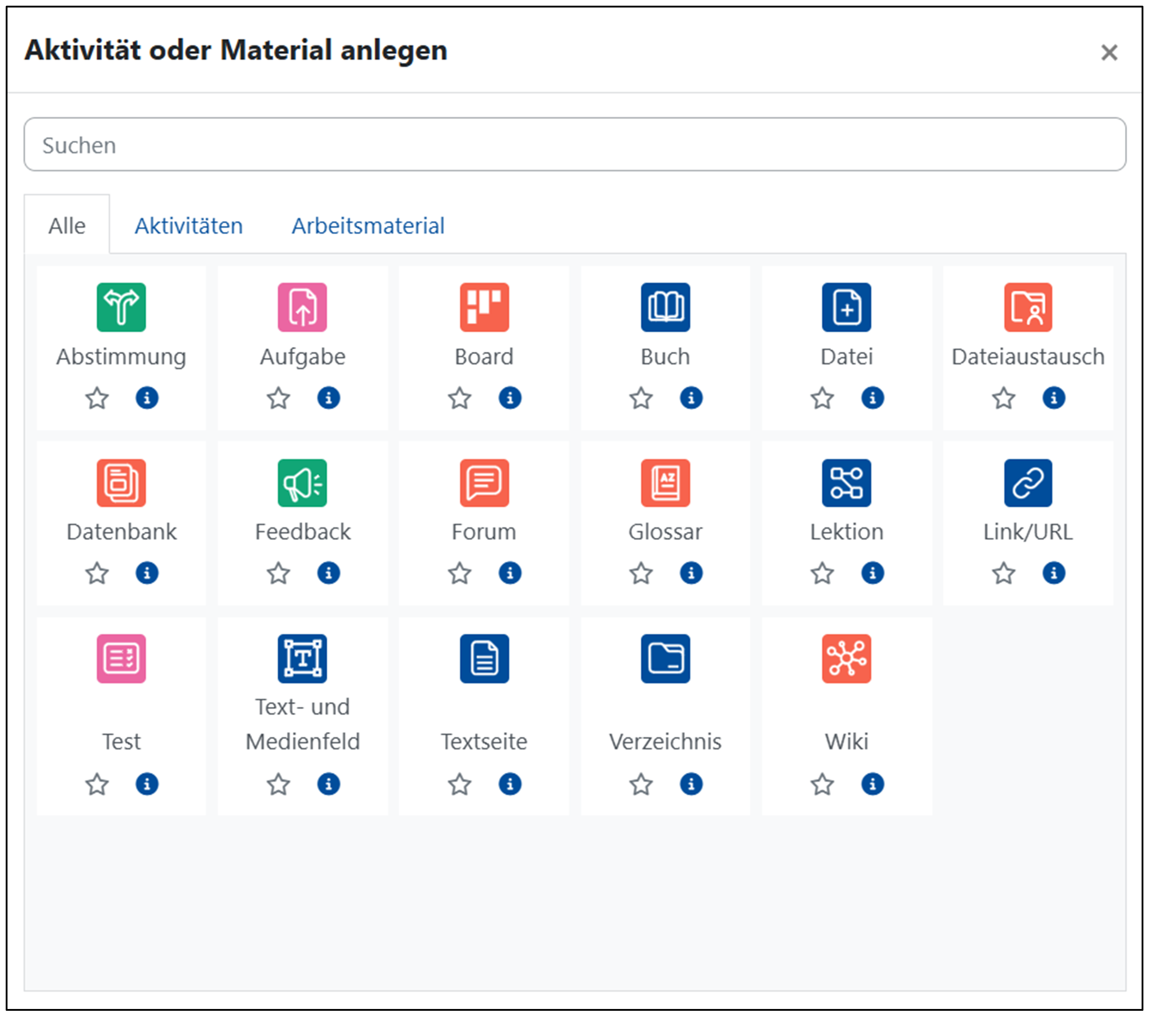 Wie Sie Aktivitäten und Materialien in Ihren Moodle-Kurs einbinden, lesen Sie hier: